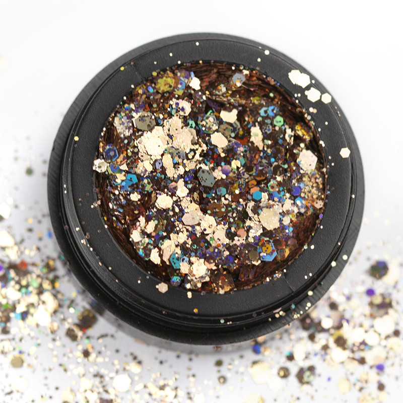 Flitterkollekciónkban kisebb-nagyobb méretű és többféle alakú csillámot, flittert kombináltunk a lenyűgöző hatás érdekében.
