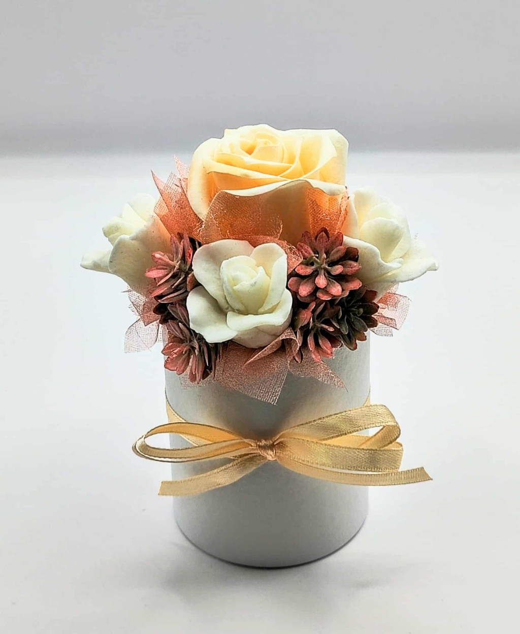 Szappanvirág csokor - Mini - Barack szappanrózsa - szappanvirág csokor - fehér henger dobozban - 3.