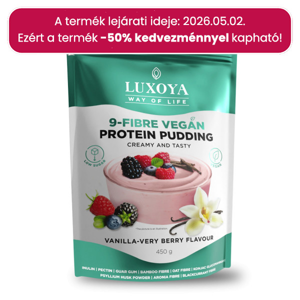 Luxoya - Vegán fehérjét tartalmazó rostpuding - 9 féle rosttal - Vanília-erdei gyümölcs ízű - DOY - 450g