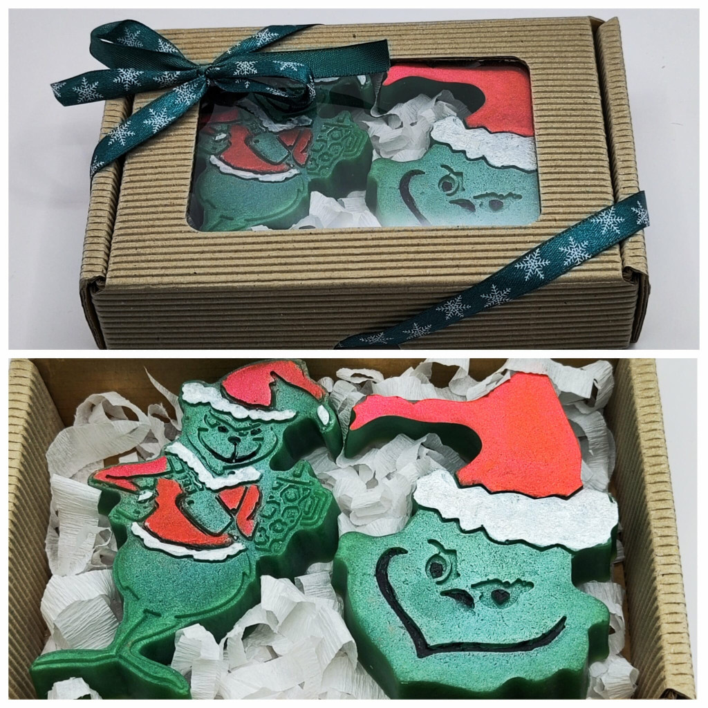 Szappan - Grincs fej + álló Grincs - szappan szett - natúr barna dobozban - 1.