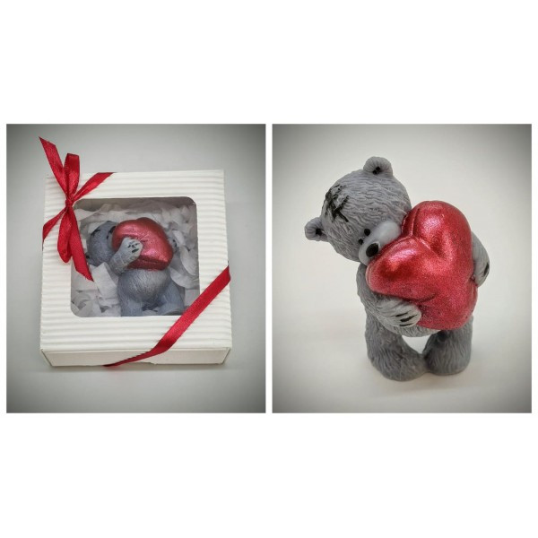 Szappan - szürke maci - piros szívvel -  díszdobozban