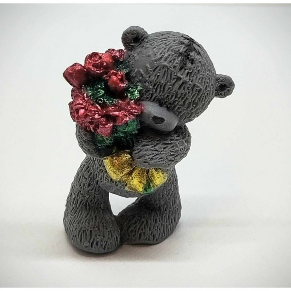 Szappan - Szürke nagy maci - piros virággal - szappan - organza szatyorban