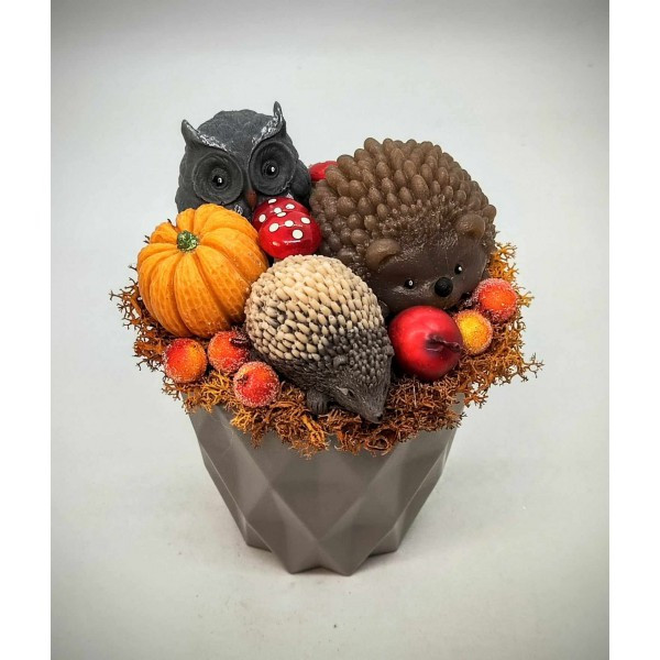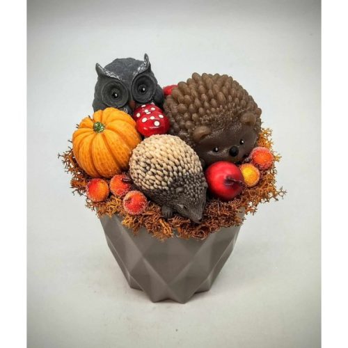 Szappanvirág csokor - baglyos- két sünis - szappanvirág csokor - kis barna műanyag kaspóban - 6.