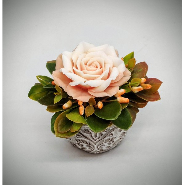 Szappanvirág - Barack-fehér rózsa - szappanvirág csokor - kis kőkaspóban - 2.
