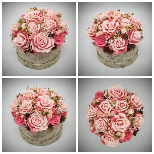 A szappant, amiből a virágok készülnek, egyedileg színezem, illatosítom és öntöm formába, majd ezekből az elkészült szépségekből állítom össze a csokrokat, boxokat.Választható szinekben, több különböző illattal rendelhető.