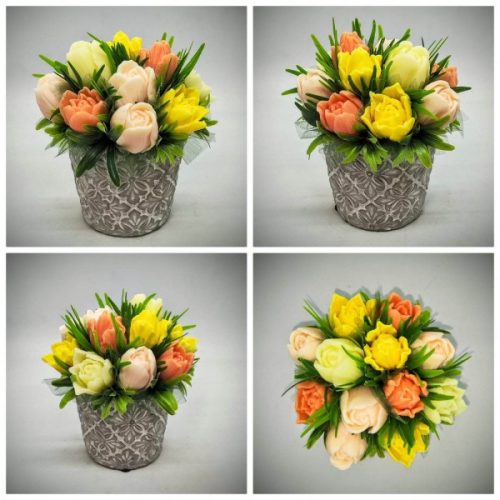Szappanvirág - Barack - vegyes - tulipán - szappanvirág csokor- kő kaspóban - 4.