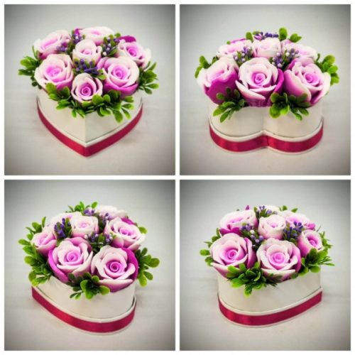 Szappanvirág - Fukszia szappanvirág csokor- fehér szív dobozban - 2.