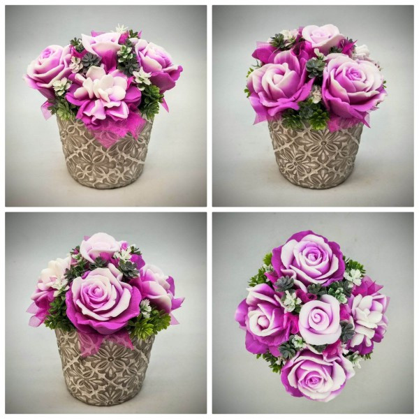 A szappant, amiből a virágok készülnek, egyedileg színezem, illatosítom és öntöm formába, majd ezekből az elkészült szépségekből állítom össze a csokrokat, boxokat.Választható szinekben, több különböző illattal rendelhető.