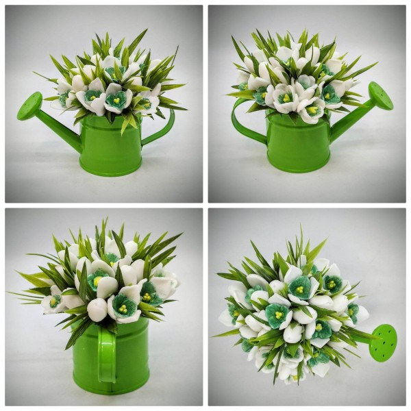 Szappanvirág - Hóvirág szappanvirág csokor - zöld kis locsoló kannában - 2.
