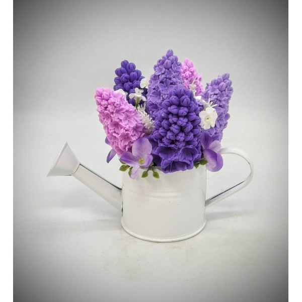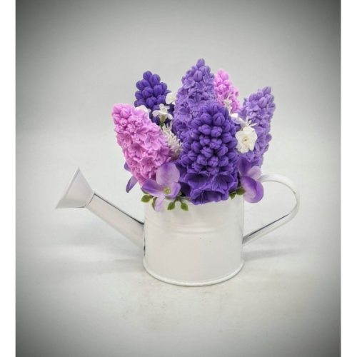Szappanvirág csokor - Lila orgona szappanvirág csokor - kis fehér locsolókannában - 1.