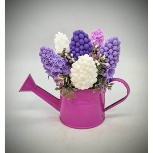 Szappanvirág csokor - Lila orgona szappanvirág csokor - kis fukszia locsolókannában - 2.