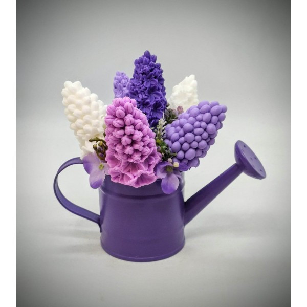 Szappanvirág csokor - Lila orgona szappanvirág csokor - kis lila locsolókannában - 3.