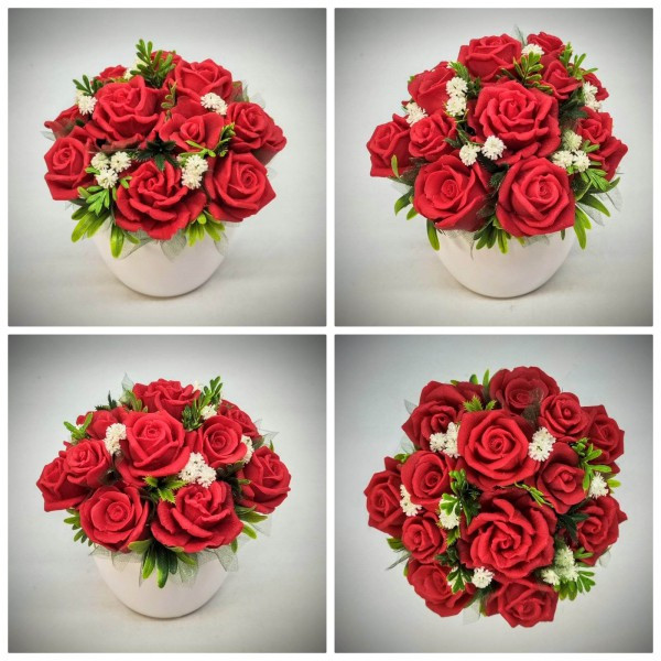 Szappanvirág csokor - piros rózsás - szappanvirág csokor - nagy fehér kaspóban - 6.