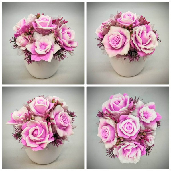 Szappanvirág csokor - Rózsaszín - fehér csokor - fehér kaspóban - 4.