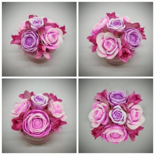 A szappant, amiből a virágok készülnek, egyedileg színezem, illatosítom és öntöm formába, majd ezekből az elkészült szépségekből állítom össze a csokrokat, boxokat.Választható szinekben, több különböző illattal rendelhető.