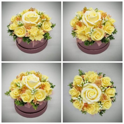 A szappant, amiből a virágok készülnek, egyedileg színezem, illatosítom és öntöm formába, majd ezekből az elkészült szépségekből állítom össze a csokrokat, boxokat.Választható szinekben, több különböző illattal rendelhető.