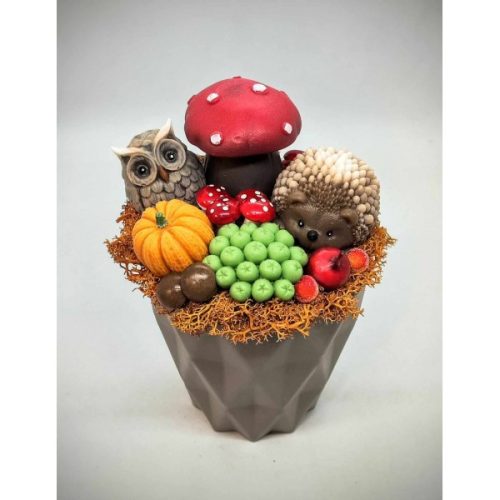 Szappanvirág csokor - Sünis-zöld bogyós - szappanvirág csokor - nagy barna műanyag kaspóban - 4.