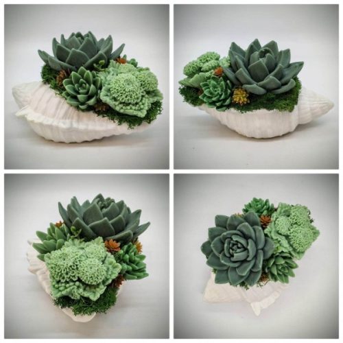 Szappanvirág - Szukkulens - pozsgás szappanvirág csokor - fehér nagyobb gipsz kagylóban