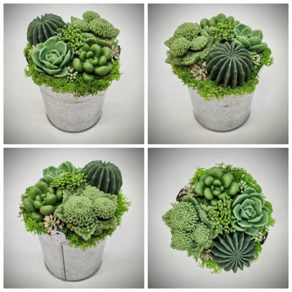 Szappanvirág - Szukkulens - pozsgás szappanvirág csokor - ezüst fém vödörben