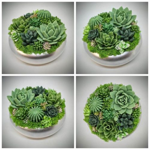 Szappanvirág - Szukkulens - pozsgás szappanvirág csokor - ezüst tál kaspóban