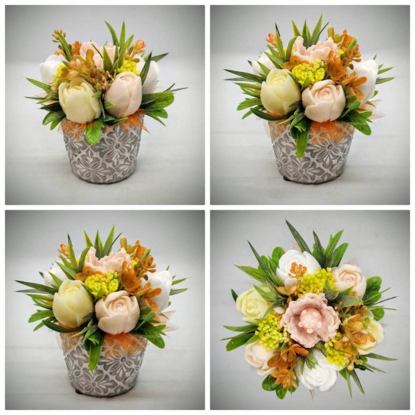 Szappanvirág csokor - Tulipán szappanvirág csokor - barack - kis kőkaspóban - 3.