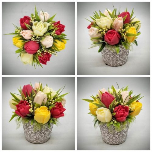 Szappanvirág csokor - Tulipán szappanvirág csokor - kőkaspóban - 5.