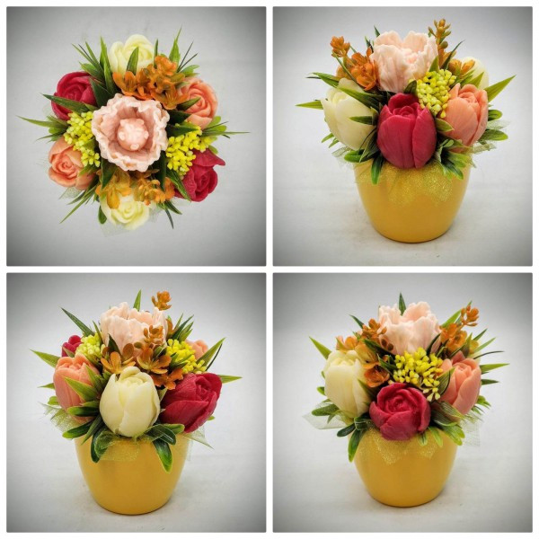 Szappanvirág csokor - Tulipán szappanvirág csokor - sárga kis kaspóban - 2.