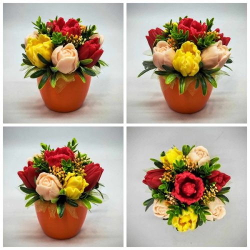 Szappanvirág csokor - Vegyes tulipán szappanvirág csokor - kis narancs kaspóban - 1.