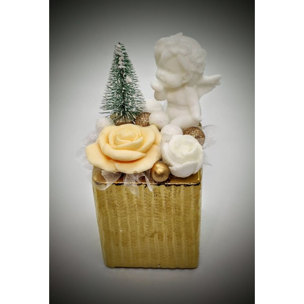 Szappanvirág angyalka - arany színű kocka kaspóban 1.