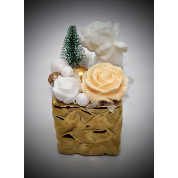 Szappanvirág angyalka - arany színű kocka kaspóban 4. Kézzel készített, illatos szappan csokrok, asztali díszek, egyedi szappanok és fürdősók