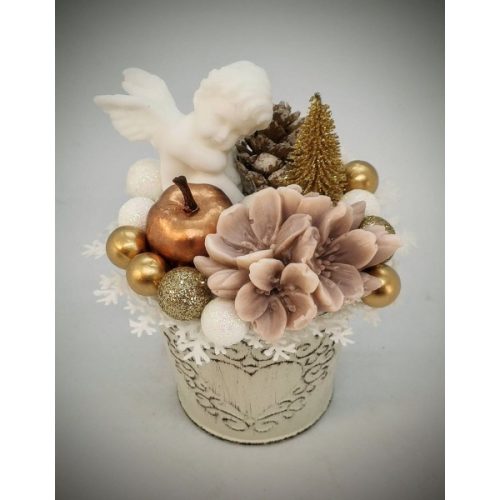 Szappanvirág angyalka - barna virággal - kicsi fém kaspóban - 2. Kézzel készített, illatos szappan csokrok, asztali díszek, egyedi szappanok és fürdősók