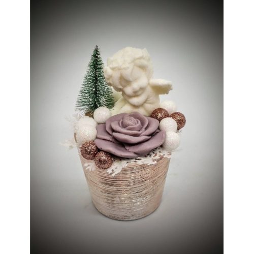 Szappanvirág angyalka - barnás-lilás rózsával - rosegold színű kis kaspóban 2. Kézzel készített, illatos szappan csokrok, asztali díszek, egyedi szappanok és fürdősók