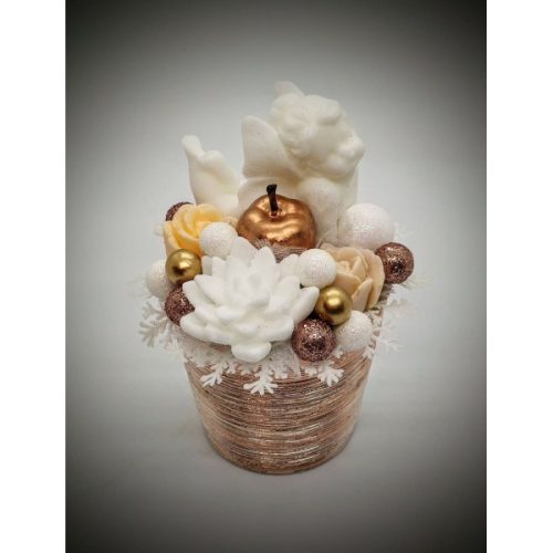 Szappanvirág angyalka - rosegold színű kis kaspóban 3. Kézzel készített, illatos szappan csokrok, asztali díszek, egyedi szappanok és fürdősók