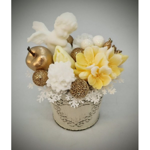 Szappanvirág angyalka - sárga virággal - kicsi fém kaspóban - 1. Kézzel készített, illatos szappan csokrok, asztali díszek, egyedi szappanok és fürdősók