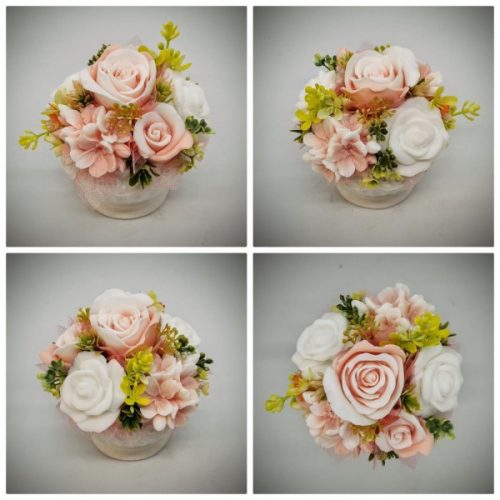 Szappanvirág csokor - barack - fehér - szappanvirág csokor - fehér kis kaspóban - 1. Kézzel készített, illatos szappan csokrok, asztali díszek, egyedi szappanok készítése.