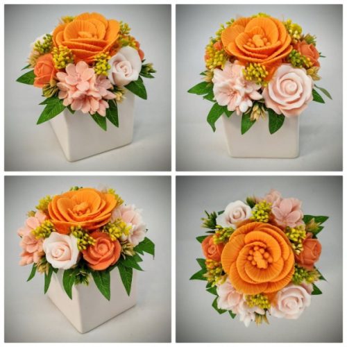 Szappanvirág csokor - barack - narancs - szappanvirág csokor - fehér kocka kaspóban - 3. Kézzel készített, illatos szappan csokrok, asztali díszek, egyedi szappanok készítése.