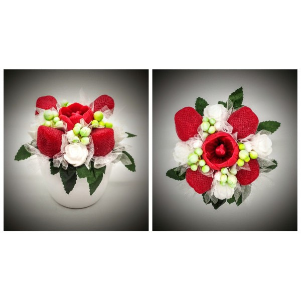 Szappanvirág csokor - epres csokor - piros tulipánnal - fehér kaspóban Kézzel készített, illatos szappan csokrok, asztali díszek, egyedi szappanok és fürdősók