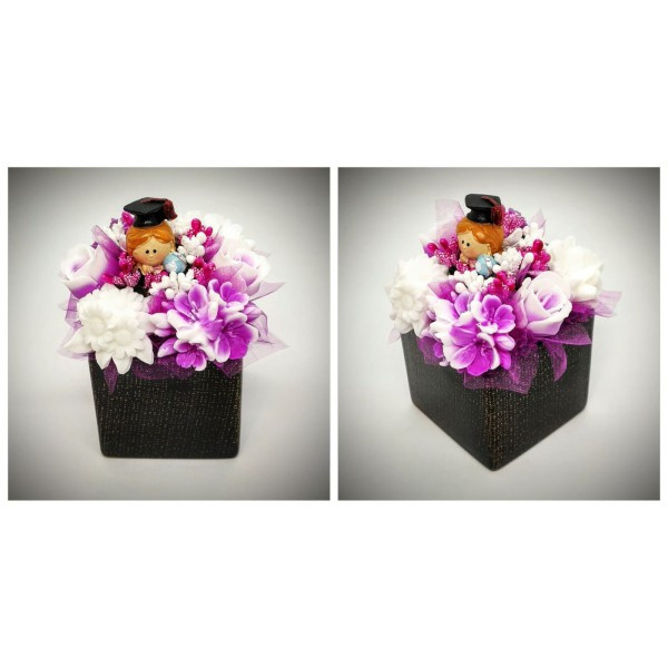 Szappanvirág csokor - Fukszia - fehér ballagó kislány szappanvirág csokor - fekete kocka kaspóban Kézzel készített, illatos szappan csokrok, asztali díszek, egyedi szappanok készítése.