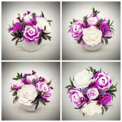 Szappanvirág csokor - fukszia- fehér szappanvirág csokor - fehér kaspóban - 1. Kézzel készített, illatos szappan csokrok, asztali díszek, egyedi szappanok és fürdősók