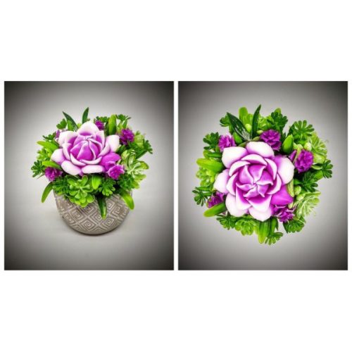 Szappanvirág csokor - fukszia lótuszbimbó csokor - kis kőkaspóban 4. Kézzel készített, illatos szappan csokrok, asztali díszek, egyedi szappanok és fürdősók