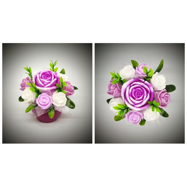 A szappant, amiből a virágok készülnek, egyedileg színezem, illatosítom és öntöm formába, majd ezekből az elkészült szépségekből állítom össze a csokrokat, boxokat.Választható szinekben, több különböző illattal rendelhető.