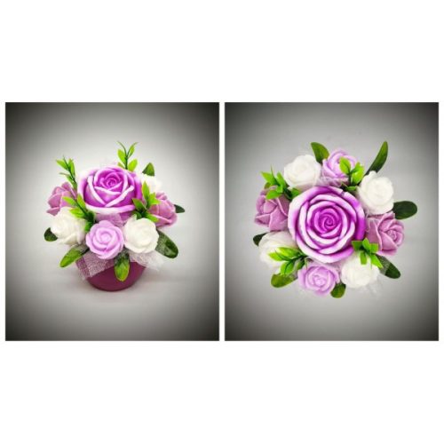 Szappanvirág csokor - fukszia rózsa csokor - kis fukszia kaspóban 1. Kézzel készített, illatos szappan csokrok, asztali díszek, egyedi szappanok és fürdősók