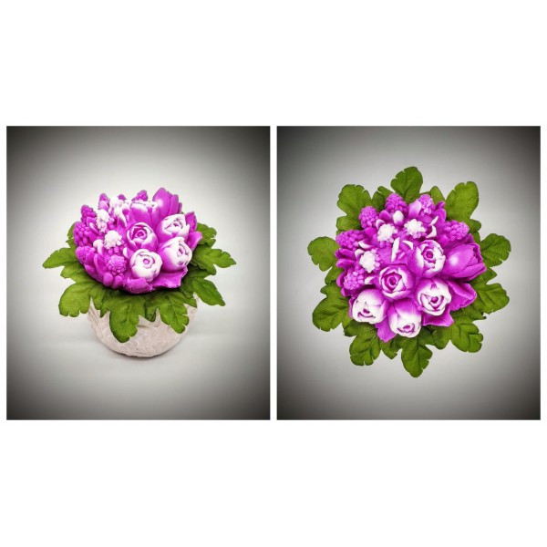 Szappanvirág csokor - fukszia tulipán csokor - kis kőkaspóban 2. Kézzel készített, illatos szappan csokrok, asztali díszek, egyedi szappanok és fürdősók