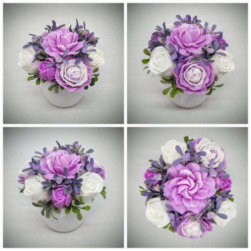 Szappanvirág csokor - halvány fukszia - fehér - szappanvirág csokor - fehér kaspóban - 5. Kézzel készített, illatos szappan csokrok, asztali díszek, egyedi szappanok készítése.