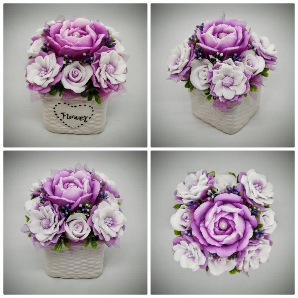 A szappant, amiből a virágok készülnek, egyedileg színezem, illatosítom és öntöm formába, majd ezekből az elkészült szépségekből állítom össze a csokrokat, boxokat.Választható szinekben, több különböző illattal rendelhető.