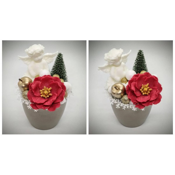 Szappanvirág csokor - karácsonyi - angyallal - piros virággal - pezsgő közepes kaspóban Kézzel készített, illatos szappan csokrok, asztali díszek, egyedi szappanok és fürdősók