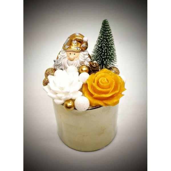 Szappanvirág csokor - karácsonyi - arany manóval - arany kis kaspóban