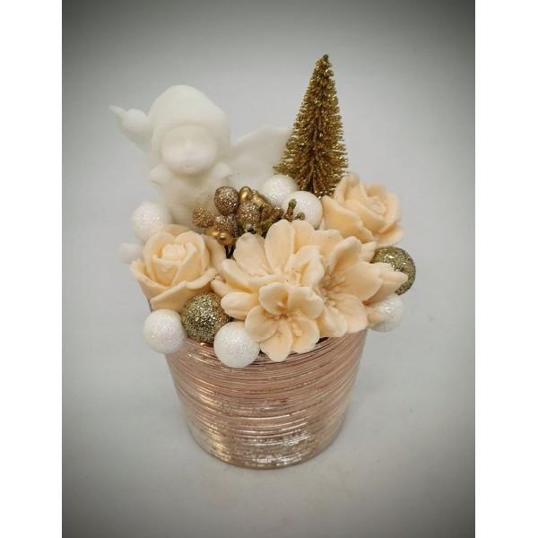 Szappanvirág csokor - karácsonyi - karácsonyi manóval - rosegold kis kaspóban