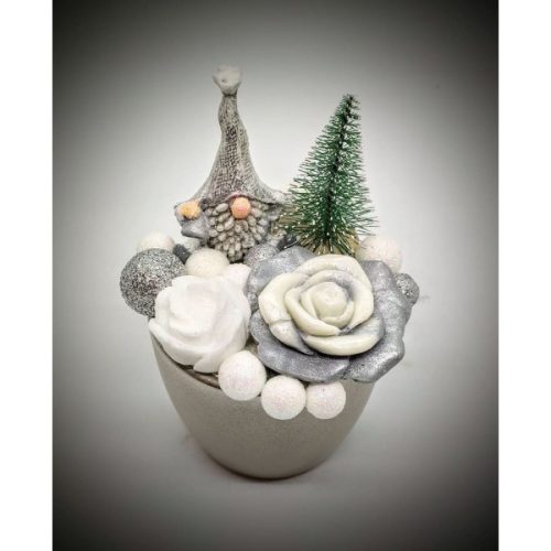 Szappanvirág csokor - karácsonyi - szürke manóval - pezsgő színű kis kaspóban Kézzel készített, illatos szappan csokrok, asztali díszek, egyedi szappanok és fürdősók