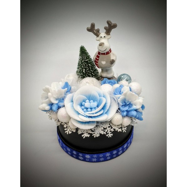 Szappanvirág csokor - kerámia szarvassal - fekete kör dobozban - 2.